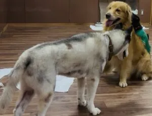 今日はゴールデン・レトリーバーのワンちゃんとシベリアン・ハスキーのワンちゃん、ミックスのワンちゃんで仲良くコミュニケーションとっている様子の一部です✨