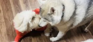 今日はオーストラリアン・ドゥードルのワンちゃんとシベリアン・ハスキーのワンちゃんが仲良くコミュニケーションとっています☺️