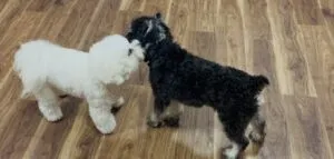 今日はお互い初対面のビションフリーゼのワンちゃんとミニチュアシュナウザーのワンちゃんがお互い挨拶している様子の1部です💭