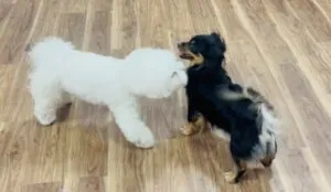 今日は仲良しのビション・フリーゼのワンちゃんとミックスのワンちゃんがプロレスしている1部です🐾