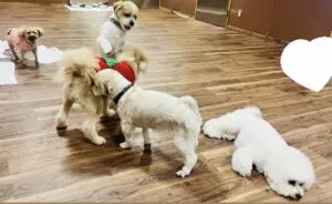 今日は仲良しメンバーのワンちゃん達がプロレスしてコミュニケーションとっています🐾
