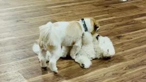 今日はビション・フリーゼのワンちゃんとミックスのワンちゃんがプロレスしている1部です🐶✨