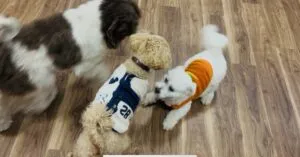 今日はミックスのワンちゃん2匹とオーストラリアン・ラブラドゥードルのワンちゃんで仲良くコミュニケーションとっている様子です💭