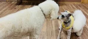 今日はゴールデン・ドゥードルのワンちゃん、ミニチュアシュナウザーのワンちゃん、ビション・フリーゼのワンちゃんみんなで挨拶している様子です💭