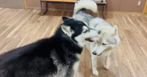 今日は仲良しのシベリアン・ハスキーのワンちゃんがコミュニケーションとっています🐶
