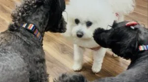 今日はビション・フリーゼのワンちゃんとミニチュア・シュナウザーのワンちゃんが挨拶しています👀
