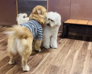 今日はオーストラリアン・ラブラドゥードルのワンちゃんとゴールデン・レトリーバーのワンちゃんがコミュニケーションとっています💭