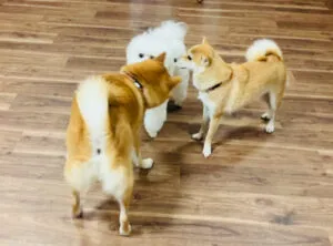 今日はお泊まりようちえんに参加してくれた柴のワンちゃんがビション・フリーゼのワンちゃんとコミュニケーションとっている様子になります🐶✨