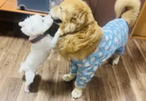 今日は仲良しのゴールデン・レトリーバーのワンちゃんとウエスト・ハイランド・ホワイト・テリアのワンちゃんが楽しそうにコミュニケーションとっています✨